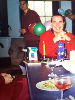 1996. Losang Kelsang as the new Deputy Spiritual Director. Kuten Lama was visiting. Carol McQuire standing up just above Kuten Lama’s head, eating with the Mexican group, her first Dharma friends.